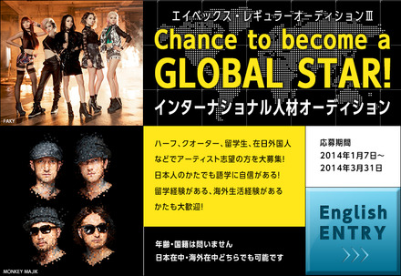 エイベックスのレギュラーオーディションでは「インターナショナル人材オーディション」を開催、エントリーを受付中!