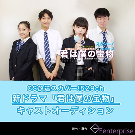 【主催】株式会社GFエンタープライズ ドラマ「君は僕の宝物」制作委員会タレントマネージメント、映像・音楽の制作等を行っている芸能プロダクション・GFエンタープライズでは、スカパー!529chにて2022年放送予定のドラマ「君は僕の宝物」のキャストを募集している。