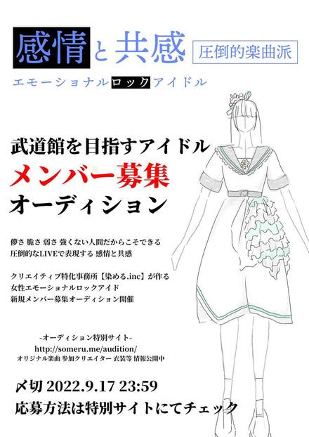 【主催】染める株式会社2021年8月創業、若者向けSNSエンタメ制作・プロデュース事業を展開する染める株式会社では、新女性アイドルグループのメンバーオーディションを開催している。コンセプトは【感情と共感】。16歳以上の女性。