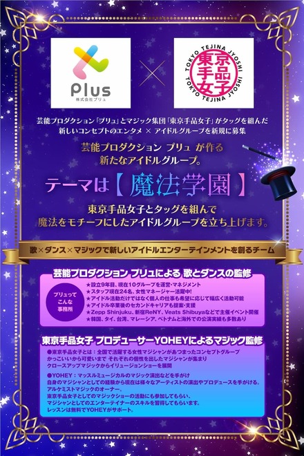 芸能プロダクション「プリュ」とマジック集団「東京手品女子」がタッグを組んだ新しいコンセプトのエンタメ×アイドルグループを新規に募集