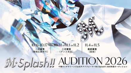 【主催】株式会社千葉ロッテマリーンズプロ野球パシフィック・リーグ「千葉ロッテマリーンズ」では、公式チアパフォーマー『M☆Splash!!』の2026年度オーディションオーディションを開催。参加者を募集している。ダンス経験のある、2026年4月2日時点で、満18歳以上の女性。