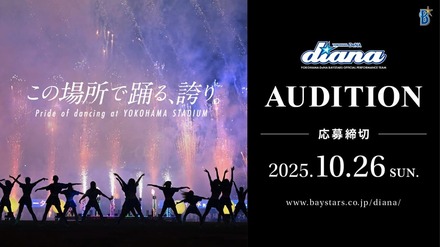 プロ野球セントラル・リーグ「横浜DeNAベイスターズ」のオフィシャルパフォーマンスチーム「diana」では、2026年度のメンバーオーディションを開催。参加者を募集している。dianaは2006年に結成、活動21年目を迎える。2026年4月1日時点で満18歳以上、ダンス経験のある女性。