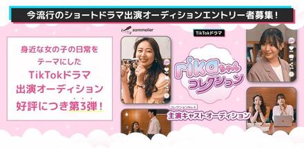 ネット配信サービス「マシェバラ」では、TikTokドラマ「rikaちゃんコレクション」(第4弾)主演オーディションを開催。参加者を募集している。グランプリは主人公・rikaちゃんとして出演! 16歳~35歳の女性。