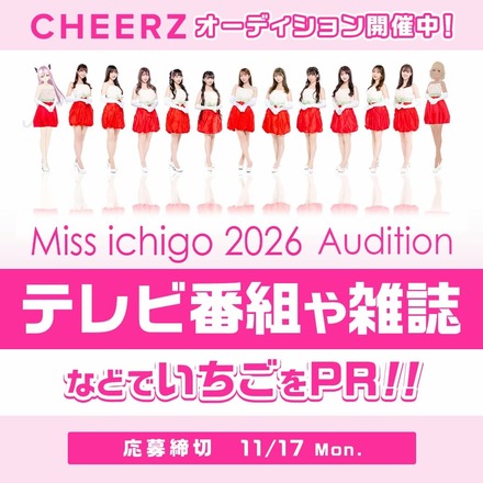 オーディションプラットフォーム「CHEERZ LIVE」では、SNS時代の芸能活動への登竜門的なオーディション「ミスいちご2026オーディション」の参加者を募集している。オーディション選出者は最終審査に進出! 13歳以上の女性。