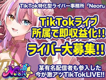 株式会社スクゥイードが運営するTikTok特化型ライバー事務所「Neon」では、実写ライバー・Vライバー・VTuberとして活動したい、または既に活動している方を対象に、所属ライバーを募集しています。