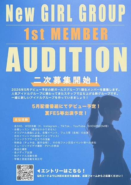 2026年5月デビュー予定の新ガールズグループ1期生メンバーを募集します。