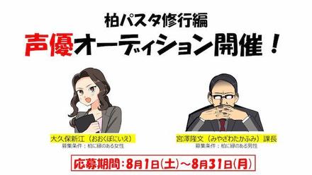 【主催】できる街プロジェクト千葉県柏市のご当地ゆるアニメ「超普通都市カシワ伝説」では、新シリーズ「柏パスタ修行編」の出演声優を募集している。