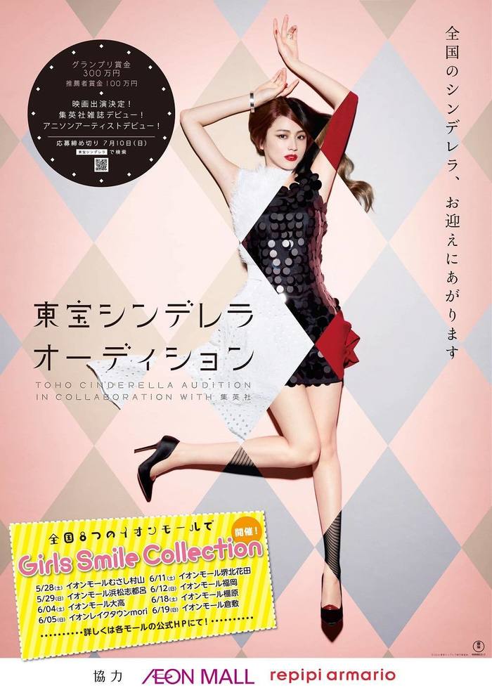 東宝株式会社と東宝芸能株式会社が主催し、沢口靖子、水野真紀、長澤まさみといった映画・演劇・ドラマ・CM等で活躍すると国民的な女優を輩出してきた「東宝シンデレラオーディション」。今年、5年ぶりに開催され、現在エントリーを受け付けているが、大型ショッピングモール「イオンモール」と、ティーン向けアパレルブランド「repipi armario(レピピアルマリオ)」とタッグを組むことが新たに発表された。